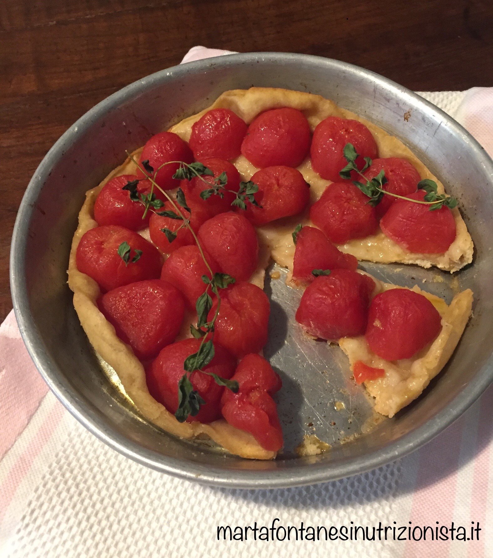 Ingredienti per 4 persone: 300 g di pasta per pane (vedi ricetta: “appena sfornato!”), 300 g di pomodorini ciliegini oppure pomodori ramati, 4 cucchiai da minestra di olio extravergine d’oliva, origano fresco q.b., un pizzico di sale. Una teglia del diametro di 22 cm. Procedimento: Pelare i pomodori precedentemente sbollentati, tagliarli a metà ed eliminare i…