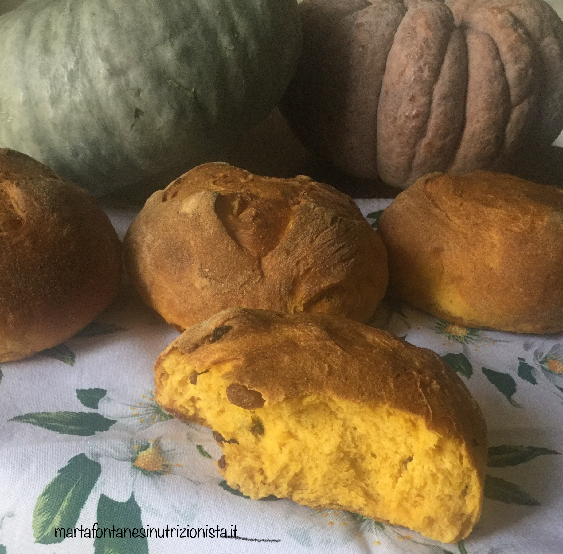 Ingredienti: Farina tipo 2 g 250, Semola di grano duro rimacinata g 250, polpa di Zucca g 250, Acqua ml 150, Lievito madre g 120, Uvetta g 100, Zucchero g 50, Olio extravergine d’oliva g 25 (2 cucchiai e mezzo da minestra), Sale 1 pizzico. Procedimento: cuocere la zucca a vapore, passarla al mixer fino ad…